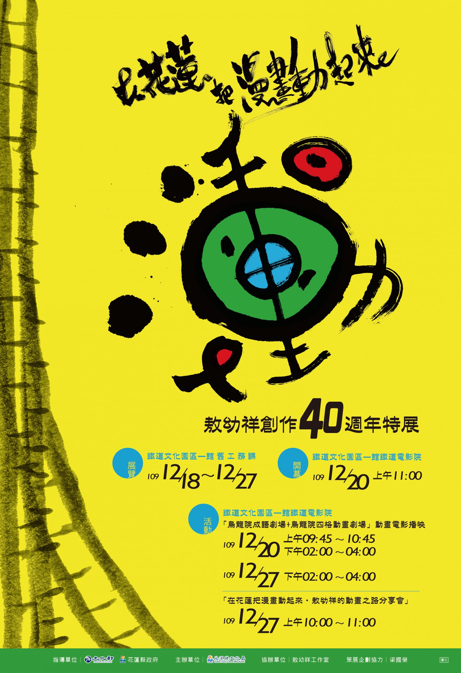 相關資訊如下:(一)展出時間:109年12月18日(五)至12月27日(日)。(二)展出地點:花蓮鐵道文化園區一館舊工務課。(三)開幕時間:109年12月20日(日)上午11時。(四)分享會時間:109年12月27日(日) 上午10時至11時。(五)動畫放映時間:109年12月20日(日)上午9時45至10時45分、109年12月20日(日)及27日(日) 下午2時至4時。(六)開幕、分享會、動畫放映地點:花蓮鐵道文化園區一館鐵道電影院。