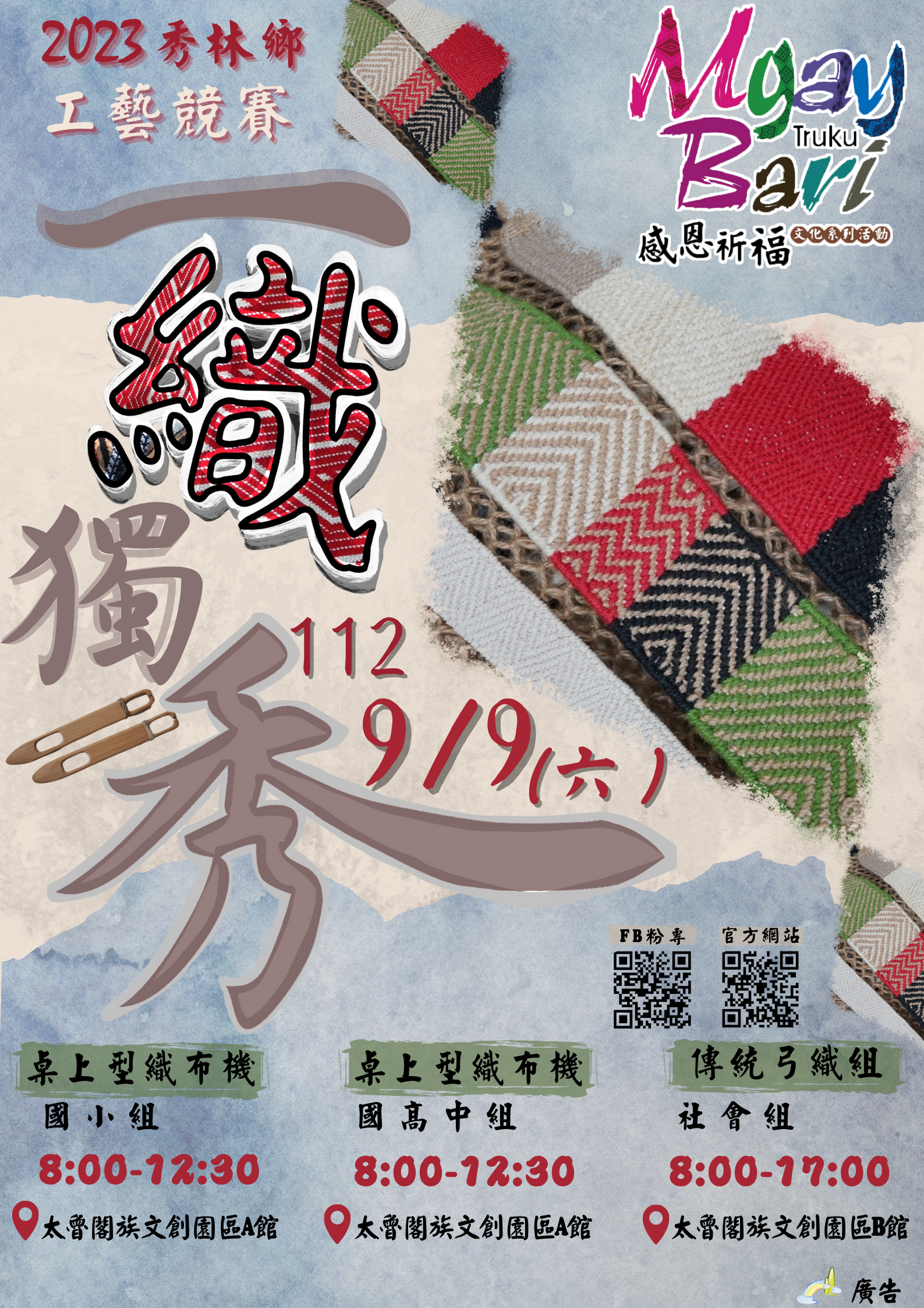| 一、 | 本活動競賽配合本鄉於112年10月14日(星期六)於水源村東方夏威夷辦理「2023 Truku Mgay Bari感恩祈福文化系列活動」,包含一系列的文化活動,感恩祭儀、美食分享、竹屋暨地織展示、傳統歌謠傳唱、傳統樂舞競賽等,使傳統織布積極保存及自我認同的意識抬頭,讓族人重燃織布熱情,有效達到良性競爭為鼓勵族人更積極投入織布創作,特辦理本項競賽。 |