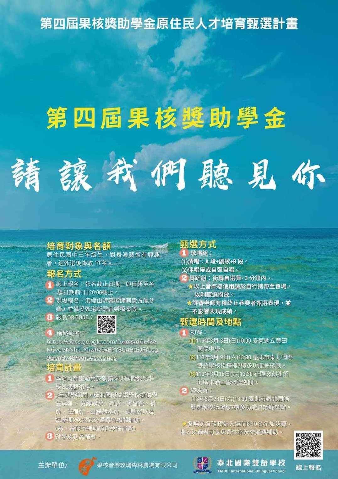 培育對象:原住民國中三年級生,對表演藝術有興趣者