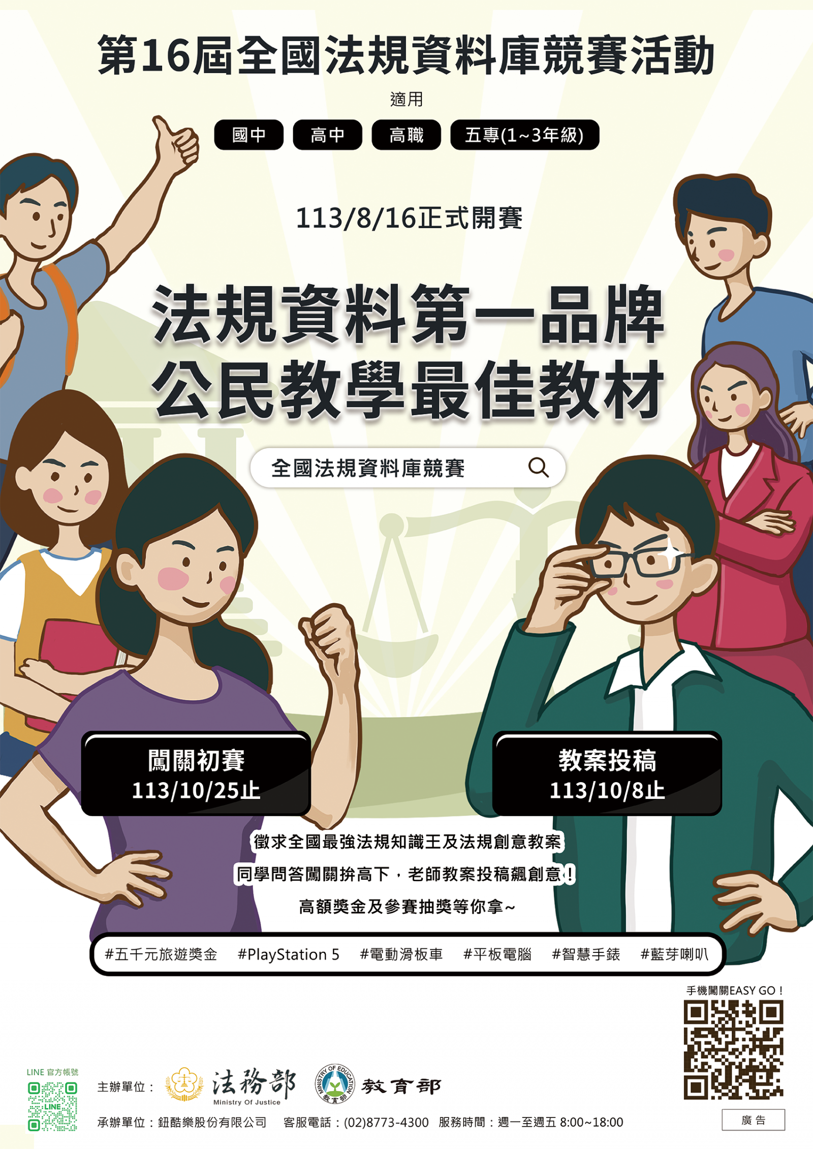 相關資訊請至「第16屆全國 法規資料庫競賽活動網站」(網址