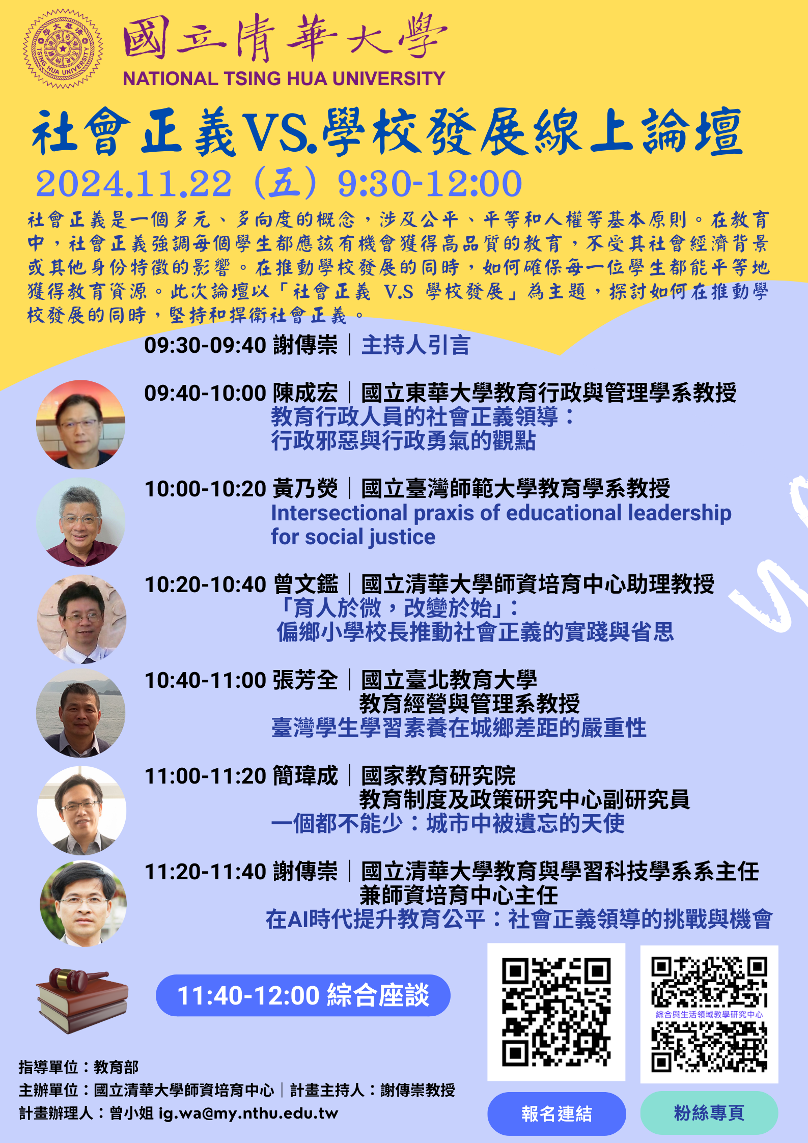 二、本次論壇以「社會正義VS.學校發展」為主題。社會正義涉及公平、平等和人權等基本原則,本次論壇將探討如何在推動學校發展的同時,堅持並捍衛社會正義,成就教育機會均等和積極性差別待遇的實質正義思維。