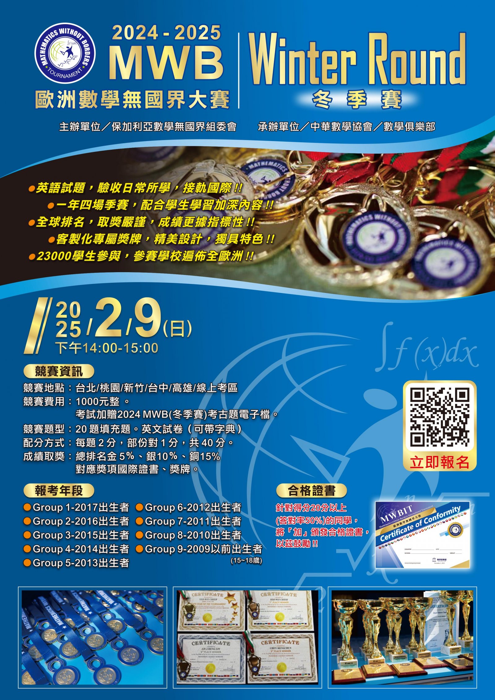 轉知2025年2月9日下午2點舉行2024-2025賽季數學無國界大賽