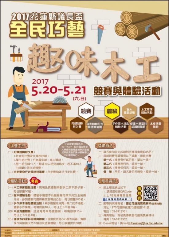 國立花蓮高級農業職業學校森林科,辦理2017年花蓮縣議長盃趣味木工競賽及體驗活動