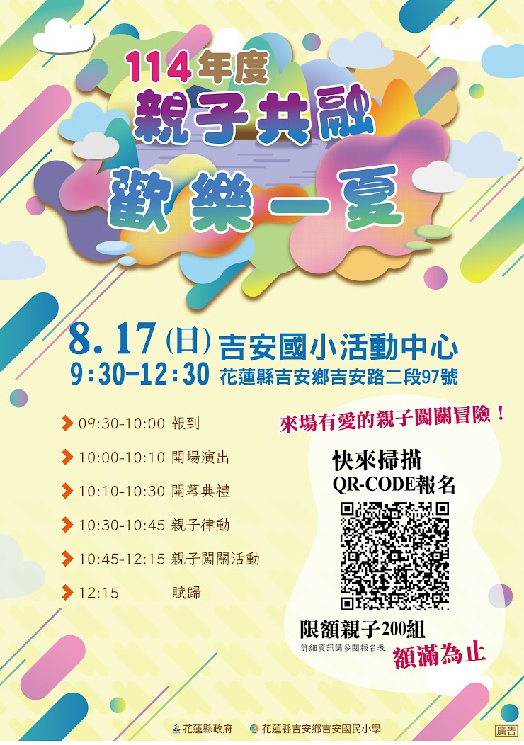 | 六、 | 檢附「花蓮縣114年度親子共融·歡樂一夏」實施計畫1份(處務公告:120215)。 |