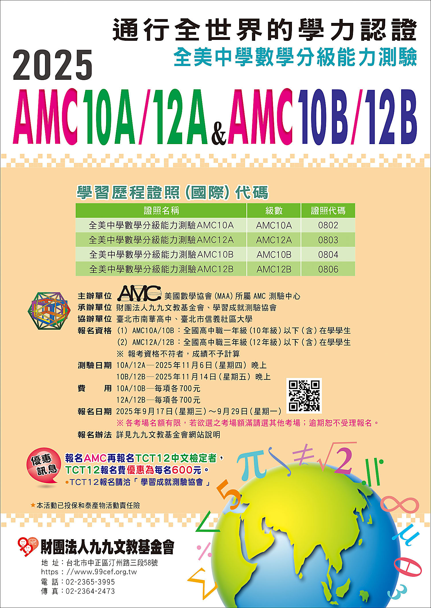 『2025年全美中學數學分級能力測驗AMC10A/12A&AMC10B/12B』臺灣區測驗考試