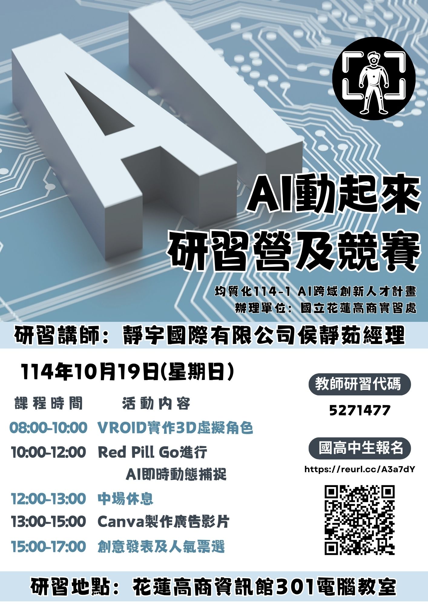 | 一、 | 依據國教署114學年度高級中等學校適性學習社區教育資源均質化實施方案計畫辦理。參與教師給予8小時研習時數,學生給予研習證明。 |